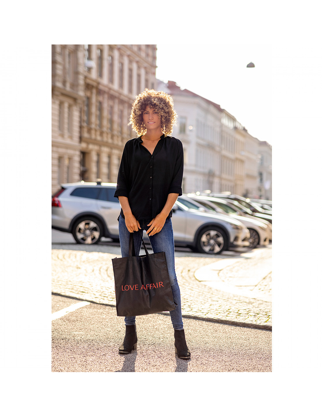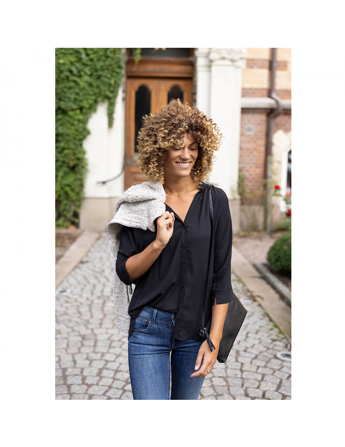 Luftige Bluse mit Knopfleiste in schwarz